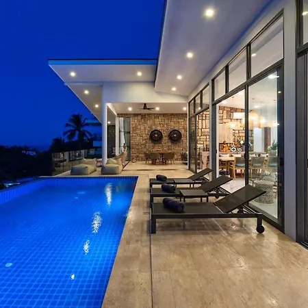 Luxury Blue Coco Sea View Villa - 4X4 Suv Included Koh Samui is located 6 km from the Guan Yu and provides a Jacuzzi. Providing guests with Wi-Fi and complimentary private parking, this 6-bedroom villa is 15 minutes' drive from the Tamarind Springs Forest Spa.